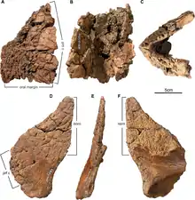 The holotype, TMP 2011.051.0009, was found in a layer of the Oldman Formation, dating from the Campanian. The layer of mudstone, 40 centimetres (1.3 ft) thick and probably deposited in a single event, has an upper possible age of 79 million years and a lower age of 78.7 million years. The holotype consists of a right parietal bone. Under the assumption that the bonebed contained only a single centrosaurine species, all additional centrosaurine material was referred to Wendiceratops pinhornensis, for a total of 184 specimens representing several individuals, including juveniles. The bones comprise elements from the skull, lower jaws, vertebral column, shoulder girdle, pelvis and limbs. They are largely disarticulated. In addition to the Wendiceratops bones, remains were found of tyrannosaurid theropods, crocodiles, gars and plants.[1]