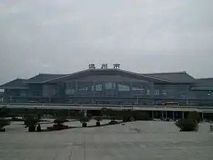 Wenzhou South railway station (simplified Chinese: 温州南站; traditional Chinese: 溫州南站; pinyin: Wēnzhōu-nán zhàn) is a railway station located in Ouhai District, Wenzhou, Zhejiang Province, China, on the Wenzhou–Fuzhou railway, Ningbo–Taizhou–Wenzhou railway, and Jinhua–Wenzhou high-speed railway which are operated by China Railway Shanghai Group, China Railway Corporation.