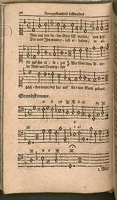 "Wer nur den lieben Gott läßt walten" (He who allows dear God to rule him) is a 1641 hymn by Georg Neumark, who also composed the melody for it. It has seven verses and deals with the Christian putting their trust in God. Its author referred to it as a "Trostlied" or song of consolation and it first appeared in his Fortgepflantzer musikalisch-poetischer Lustwald (published in Jena in 1657). It also appeared in Johann Crüger's 1672 Praxis pietatis melica and in the first part of Johann Anastasius Freylinghausen's 1704 Geistreiches Gesangbuch.[1] It has inspired musical settings, and is part of current German hymnals, both Protestant and Catholic.