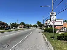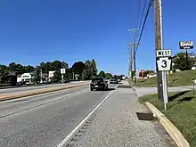 Pennsylvania Route 3 (PA 3) is a 24.3-mile (39.1 km) state highway located in the southeastern portion of Pennsylvania. The route runs from U.S. Route 322 Business (US 322 Bus.) in West Chester east to PA 611 in Philadelphia. The route begins in downtown West Chester and heads east out of the borough as a one-way pair of streets. Between West Chester and Upper Darby, PA 3 follows a four-lane divided highway named West Chester Pike through suburban areas. Along this stretch, the route passes through Edgmont, Newtown Square, Broomall, and Havertown. The route has an interchange with Interstate 476 (I-476) between Broomall and Havertown. Upon reaching Upper Darby, PA 3 heads into Philadelphia along Market Street. In Philadelphia, the route follows multiple one-way pairs, running along Chestnut Street eastbound and Walnut Street westbound in West Philadelphia before heading into Center City Philadelphia along Market Street eastbound and John F. Kennedy Boulevard westbound and ending at Philadelphia City Hall.