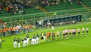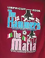 As runners-up in the 2006 FA Cup West Ham, now managed by Alan Pardew, gained entry to the 2006–07 UEFA Cup.[66][67] Violence involving West Ham supporters was again in evidence. Twenty West Ham fans appeared in an Italian court following their arrest after fights with rival supporters in Sicily before and after West Ham's game against Palermo in the away leg of their 2006–07 UEFA Cup game. At the home leg, fans had bought T-shirts bearing the slogan "the Mafia" – a reference to Sicily being the home of the Cosa Nostra. This was seen as antagonistic by Palermo fans. Six West Ham fans, six police officers and five locals suffered minor injuries in fighting in Sicily. Rival fans threw bottles and chairs in the city's Teatro Massimo district. Five-hundred people were involved in the brawl and police officers were attacked. It took police in riot gear more than an hour to bring the violence under control. An eyewitness said, "West Ham fans behaved like animals, roaming the streets, bottles in hand searching for anyone to fight."[68] More than 2,500 West Ham fans travelled to Palermo for the game.[69]
