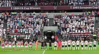 West Ham began their group stage campaign on 8 September against Romanian team FCSB at the London Stadium winning the game 3–1. FCSB's Andrei Cordea scored in the first-half but second-half goals from Jarrod Bowen, a penalty, Emerson, his first for the club, and Michail Antonio put West Ham top of Group B after the first round of matches.[130] The game contained multiple tributes to long-reigning queen Elizabeth II, whose death had been announced earlier that day.[131] On 15 September, West Ham played their second group stage game, away to Danish team Silkeborg. They conceded in the fifth minute when Kasper Kusk scored. The Hammers then replied with a penalty by Manuel Lanzini after Maxwel Cornet was fouled, a goal from Gianluca Scamacca and a header by Craig Dawson. Søren Tengstedt scored in the 75th minute and the game ended 3–2 to West Ham.[132] On 6 October, West Ham travelled to Belgium to face Anderlecht. The game finished 1–0 to West Ham, the only goal being scored by Gianlucca Scamacca in the 79th minute.[133] The Hammers officially sealed their place in the Conference League knockout stages on 13 October with a 2–1 win over Anderlecht. Saïd Benrahma scored a free-kick from 20 yards (18 m) in the 14th minute before Jarrod Bowen scored in the 30th minute. Bowen's goal took him level with Johnny Byrne and David Cross on six European goals. Sebastiano Esposito pulled one back for the Belgians via a penalty in the 89th minute.[134][135] The game was marred by crowd behaviour during the latter stages as seats were thrown and flares set-off amongst the Anderlecht fans and thrown when Anderlecht scored their penalty.[136] Four police officers were injured following clashes with Anderlecht fans. One officer was struck on the head by a chair and another suffered a suspected broken wrist. A man was arrested for the alleged assault of an officer and 13 were arrested for other offences during the game.[137] On 15 October three Anderlecht supporters were convicted of offences at Croydon Magistrates’ court with one being sentenced to eight weeks in prison for an assault on an emergency worker.[138] On 21 October, Anderlecht were fined €50,000 and banned from selling tickets to travelling fans for two European matches following the crowd trouble. The second match of the ban was suspended for two years. UEFA also ordered Anderlecht to pay for damage to 86 seats and the stadium toilets in the away section at the London Stadium.[139] On 27 October, West Ham qualified for the knockout-phase after beating Silkeborg 1–0 at the London Stadium. The only goal, a penalty, was scored by Manuel Lanzini after Michail Antonio had been fouled by Silkeborg's goalkeeper, Nicolai Larsen.[140]