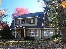 - The Paquette house at 715 W Dover St is a Dutch Colonial Revival-style house built in 1925. The hallmark of this style is the gambrel (barn-like) roof. The Colonial Revival elements on this house are the front door with sidelights, sheltered by a porch with Tuscan columns supporting a pedimented roof. At the end is a sunroom with its corners supported by pilasters.[2][16]