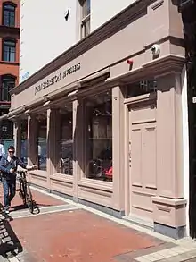 West began its existence in 1720 as West Sons on the city's Capel Street.[2] It transferred to College Green in 1845 (1841?[3]) and to 102 Grafton Street in 1912.[1][3] Queen Victoria gave West the royal warrant as her watchmaker, and once bought two replicas of the Tara Brooch from the company.[2] The Lord Lieutenant of Ireland was another customer.[2] The company also created the original 22-carat gold chain of office used by the Lord Mayor of Dublin and one replica.[4] West moved to 33 Grafton Street in 1965.[1] Kathleen Watkins, the wife of veteran broadcaster Gay Byrne, confessed in an interview with The Irish Times that she did not own any jewellery from West.[5]