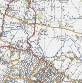 West Parley is a village and civil parish in south-east Dorset, England, situated on the River Stour between Bournemouth and Ferndown and off of the B3073 road. The parish of West Parley covers an area of 4.52 square kilometres (1,120 acres).[1] It is also about 4 miles (6.4 km) to the closest major town of Bournemouth. West Parley has a primary school, a post office, a garden centre and a church. In the 2011 census the parish had a population of 3,585.[2]