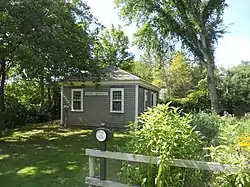 The West Schoolhouse is a historic school building at 61 Whig Street in Dennis, Massachusetts. Built c. 1770–75, this one-room schoolhouse is the oldest in Dennis. It served as a schoolhouse until 1865, and was moved to its present location in 1973.[2] It is the only one of Dennis's twelve district schools that is still standing.[3] It is now on the grounds of the Josiah Dennis House, a museum property operated by the Dennis Historical Society.[4]