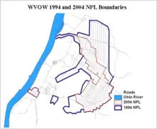 Around 1979, fishermen in the Wildlife Management Area reported red water seepage at the site and beginning in 1981, TNT, DNT and other residual contaminants from World War II operations were discovered. On September 8, 1983, the site was listed on the National Priorities List (NPL) making it eligible for cleanup as part of the Superfund program. The site was West Virginia's "top priority" cleanup site and was among the national top ten most polluted sites. Portions of the site have been cleaned up or determined uncontaminated and were later removed from the list, but cleanup has not been completed as of 2007.
