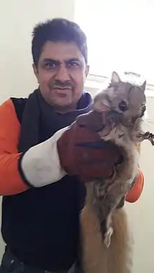 The western woolly flying squirrel (Eupetaurus cinereus) is a species of very large flying squirrel in the genus Eupetaurus. It is native to northern Pakistan and northwestern India. It was long considered the only species in the genus until the description of two other species in 2021.[2] Until recently, scientific knowledge of this rare species was limited to 11 skins collected in the late nineteenth century. However, recent research has confirmed that it remains in Kashmir. It is among the longest members of the family Sciuridae, and one of the biggest gliding animals known. Observations confirm that despite its size, it does glide effectively, like other flying squirrels.
