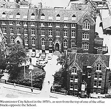 Westminster City School is a state-funded secondary academy for boys, with a mixed sixth form, in Westminster, London. The school educates over 800 students, with links to more than 100 different cultures, in a central London location. The school offers places at Year 7 entry, each year, to boys of Christian faith, other world faiths, and those of no faith. The current headteacher is Peter Broughton, while the current deputy headteachers are Jen Lockyer and Simon Brown.[1]