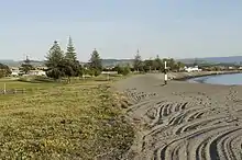 The first European settlers built houses on Westshore in 1850, when it was little more than a sandspit.[3] Prior to the 1931 Hawke's Bay earthquake, Westshore was already a popular seaside resort, a long-time popular spot for yachting and boating activities. In 1931 the earthquake struck Napier, reclaiming the Ahuriri Lagoon. This freed up land and allowed Westshore to expand as a suburb, as previously a narrow shingle spit was the only land available. The earthquake also transformed the previously dangerous and shingly seashore into a safe and sandy swimming beach.[4] Projects such as beach front beautification, landscaping and other improvements have helped to make Westshore one of the most popular and preferred beaches in Napier.