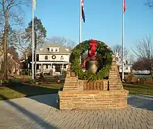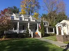 The Lenni-Lenape Native Americans inhabited this part of the state and shared it with the transient hunters and trappers until the permanent settlers began to enter in mid-18th century.[31] In the early 19th century, the area that would later become Westwood was within the larger political boundaries of Harrington Township, which had been established by royal charter in 1775. In 1840, the western half of Harrington Township became Washington Township, with the Hackensack River as the dividing line.[27] Washington Township was an agrarian region with isolated farmsteads. Early families, including the Hoppers and Ackermans, are buried at the Old Hook Cemetery. An 18th-century mill was situated at the dammed stream near the intersection of today's Mill Street and First Avenue. This mill was on an important east west pathway and was the first on Musquapsink Brook.[32] The mill was largely destroyed after a fire set by an arsonist and was dismantled in 1910.[33]