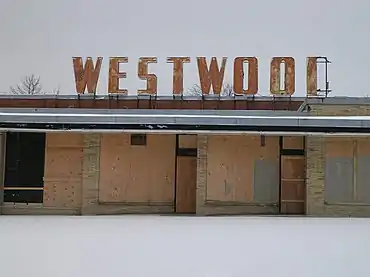 When built, the Westwood property was 13.8 acres (5.6 hectares), mainly consisting of a large parking lot.[2] By the time Etobicoke was amalgamated with Toronto, the land the theatre and its parking lot occupied was too valuable to be used as a theatre.[2] The theatre shut its doors in 1998, and lay vacant until 2013. As an independent city before amalgamation, Etobicoke's city hall, and other civic buildings occupied a campus on The West Mall that was only conveniently reached by car, a site which has continued post-amalgamation as a civic and community centre. However, its new civic centre is proposed to be moved to this former Westwood site, within walking distance of the Kipling and Islington subway stations. The site was later demolished and is now used for the Six Points interchange reconfiguration.