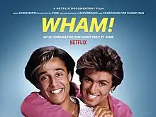 Wham! is a 2023 documentary film about the English pop duo Wham! consisting of George Michael and Andrew Ridgeley. The film marks the 40th anniversary of their 1983 debut album Fantastic. It was directed by Chris Smith and relies primarily on rare archive footage and audio interviews by the duo, including television appearances, concert footage, private home video, behind-the-scenes outtakes, and family comments all linked together using scrapbooks created by Ridgeley's mother.[5] The Netflix film was co-produced by Ventureland / Passion Pictures, Nemperor Production, and Library Films with Altitude Film and Netflix serving as distributors.[6][7][8]