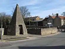 The village lock-up, built in 1834, is a stone building in the shape of a hexagonal pyramid,[9] near the edge of the former quarry. It has a heavy padlocked door and the floor space is about 6 feet (1.8 m) square with a headroom of about 8 feet (2.4 m). In the 19th century it was used to lock up drunks overnight before sending them to the Oxford court. More recently it has been opened every May Day. For a small charge visitors can be locked up for five minutes or so, and given a certificate to prove it.