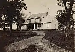 During the Peninsula Campaign, Frederick Law Olmsted, designer of New York City's Central Park among his many accomplishments, served as Executive Secretary of the U.S. Sanitary Commission, a precursor to the Red Cross in Washington D.C. which tended to the Union wounded during the Civil War. Olmsted headed the medical effort for the sick and wounded at White House Landing until McClellan abandoned it as he retreated with his troops during the Seven Days Battles and shifted his base to Harrison's Landing on the James River. The plantation house of White House Plantation was burned by retreating Union troops.[12] This was not the original White House Mansion. The original White House Mansion built by Col. John Lightfoot III had been removed to "make way for the structure which stood on the same site and burned on June 27, 1862".[1]