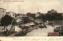 ![]() White Oak Bayou and Buffalo Bayou at Allen's Landing, with the University of Houston–Downtown in the distance. | |