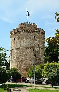 The present tower likely replaced an older Byzantine tower mentioned by the 12th-century archbishop Eustathius of Thessalonica during the sack of the city in 1185.[1] The present tower, which once guarded the eastern end of the city's sea walls, was for many years attributed to Venice, to which the Byzantines ceded Thessaloniki in 1423. It is now known that the tower was constructed by the Ottomans sometime after the army of Sultan Murad II captured Thessaloniki in 1430.[2] Until 1912, an inscription in Ottoman Turkish verse above the door attributes the tower's construction to AH 942 (1535–1536) on the orders of Sultan Suleiman.[1]