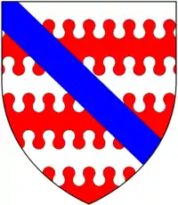 According to Meredith, the Amory family (or d'Amory, Emery, Amery, etc.) had been resident within the parish of Bishop's Nympton from as early as 1524.[25] The family acquired Whitechapel following its sale by Sir Robert Bassett, and held it until about 1660.[26] It was during this time held together with the estates of Reeds, Hammetts, West Berwill (or Berryfield), all in the parish of Bishops Nympton, and with other estates in Mariansleigh, King's Nympton and Rose Ash.[26] There was another family of this name in Gloucestershire,[27] which bore the same armorials as recorded in the respective heraldic visitations to Gloucestershire[28] in 1592 and to Devon[24] in 1620. The arms for both were: Barry nebulé of six argent and gules, over all a bend azure.