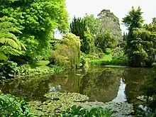 Whitford's first European settlers, George and William Trice, arrived from Kent in England in 1841.[11] They started a popular and productive farm on Clifton Road near the village settlement in 1843,[4] primarily growing potatoes and employing local members of Ngāi Tai.[11] Over time, the farm grew to 1,000 acres.[11] The family established an unproductive gold mine, which later became the Whitford Quarry and was used as a landfill.[4] The Trice family were followed by more settlers in the mid-1850s,[4] including Isaac and Eve Wade from Wells, Somerset.[11] The first wooden bridge across the Mangemangeroa Creek to the west was constructed in the 1860s, better connecting the community to Auckland by road.[12] Despite the bridge, transport to the community usually occurred via water until the 1920s, when roads and motor transport were improved.[4]