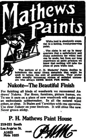- "Mathews Paint Company and Western Wholesale Drug Company on South Los Angeles Street Almost Completely Gutted by Flames of Unknown Origin," Los Angeles Times, May 18, 1907, page II-2