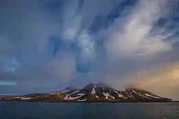 Wiener Neustadt Island's area is 237 km2 and it is almost completely glacierized. The highest point of this island, Peak Parnass, is 620 m, the highest in Franz Josef Land.[4]