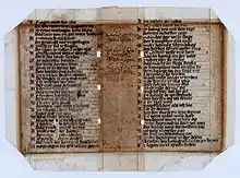 Wigand's chronicle is sometimes referred to in German sources as "Wigand of Marburg's rhyming chronicle" (German: Reimchronik Wigands von Marburg), since it is a medieval chronicle written in rhyming prose in a vernacular language (the definition of a rhyming chronicle). The chronicle is referred to in a few German sources as "[the] 'chronicle of Thorn'/'Thorn chronicle' from 1293 to 1394",[6][7][8] probably because Gesselen's Latin translation was found in Thorn in 1821.[9]