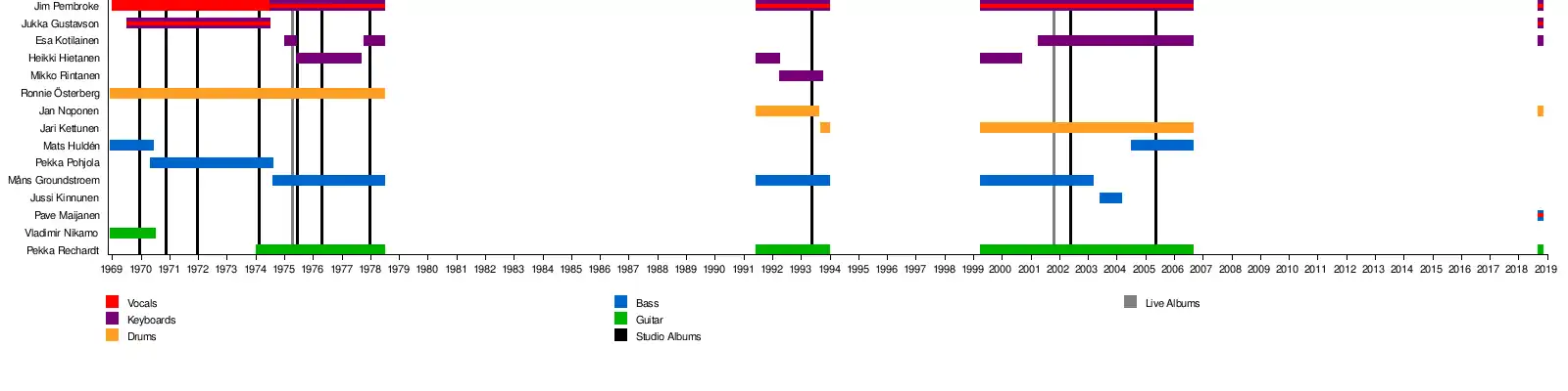 - Jukka Gustavson – vocals, electric organ (1969–1974, 2018)