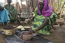 Trees of note include the shea tree (known as karité in the local Dioula language and the baobab.[1] Although the shea tree is indigenous to the semi-arid Sahel region of West Africa, Burkina Faso contains the largest number of them.[3] The shea tree is extremely important to the Burkinabe people and is termed as "women's gold" by the villagers, because the nuts of shea tree can be collected and then processed by crushing and grinding to yield shea butter, important in cuisine and in exports, for use in the manufacture of chocolate and cosmetics such as soap.[3] Shea nuts are the country's third most important export, after cotton and livestock; in 1997, an average tonne of unprocessed shea nuts sold domestically for CFA70,000 (US$980) and overseas for CFA1,00,000 (US$1400).[3] The most important centres of shea butter production are in Sissili Province and Ziro Province.[3] The bark of the tree is also used as an ingredient in traditional medicines and the shell of nut is said to be able to repel mosquitoes and is also said to protect existing trees.[3] The Bambara groundnut (Vigna subterranea) is also grown in abundance; Burkina Faso produced some 20,000 tonnes in 1989, after peanuts (160,000 tonnes) and cowpeas (74,000 tonnes).[17] Between 1982 and 1985, an attempt was made to improve the Bambara groundnut, an initiative which involved the participation of plant breeders in the Grain Legumes Programme.[17]