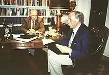 Mohnke's regiment was involved in the murder of three Canadian prisoners of war in Normandy in 1944.[10] Mohnke himself was investigated by Canadian authorities, but was not charged.[37] There was also a campaign by British Member of Parliament Jeff Rooker to prosecute Mohnke for his alleged involvement in war crimes in relation to the Wormhoudt massacre. Mohnke strongly denied the accusations, telling historian Thomas Fischer, "I issued no orders not to take English prisoners or to execute prisoners."[38] After the case was reopened, a German prosecutor came to the conclusion there was insufficient evidence to bring charges.[9]