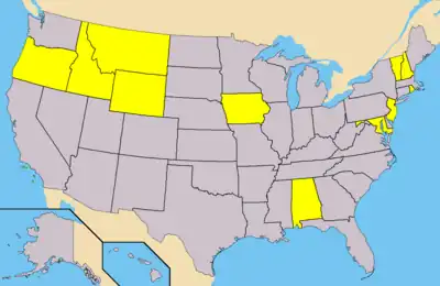 Light Blue – States where A.E. had submitted petitions. (41 Confirmed)