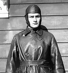 In World War I, Wellman enlisted in the Norton-Harjes Ambulance Corps to serve as a driver in Europe.[8] While in Paris, Wellman joined the French Foreign Legion and was assigned on December 3, 1917, as a fighter pilot, becoming the first American to join Escadrille N.87 in the Lafayette Flying Corps (not the sub-unit Lafayette Escadrille as usually stated),[9][10] where he earned himself the nickname "Wild Bill", and was awarded the Croix de Guerre with two palms.[2] N.87, les Chats Noir (Black Cat Group) was stationed at Lunéville in the Alsace-Lorraine sector and was equipped with Nieuport 17 and later Nieuport 24 "pursuit" aircraft. Wellman's combat experience culminated in three recorded "kills", along with five probables, although he was ultimately shot down by German anti-aircraft fire on March 21, 1918.[11] Wellman survived the crash but he walked with a pronounced limp for the rest of his life.[8]