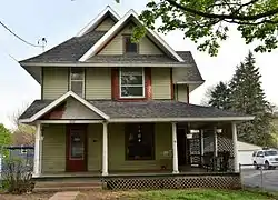 The William A. and Ida C. Johnson House is a historic residence located in Oskaloosa, Iowa, United States. The Johnsons, who were farmers, moved to town so that their children could attend Quaker schools there. This was typical of many Quaker families of that era.[2] Other family members also boarded with them so they too could attend the schools. William Johnson also served on the William Penn College Board of Trustees and served as its president from 1915 through 1922. It was during his tenure that the Main Building was destroyed by fire and the college moved to its present location. This Queen Anne style house is a 2½-story, frame, single-family dwelling. It features a wrap-around full-width porch with a gable-end entryway and a bay window on the main facade. The house is capped with a complex roof of intersecting steeply-pitched gables. It is the Johnsons' association with the school in the context of the Quaker testimony in Oskaloosa that makes this house historic.[2] It was listed on the National Register of Historic Places in 1996.[1]