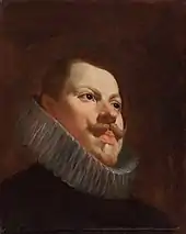 Jordan found that historical accounts of Philip III in The Expulsion of the Moriscos match the expression and direction of Portrait of Philip III; he added that Philip III looking upwards suggested that it was meant to be a part of another painting with a wider scene. He concluded that the style of Portrait of Philip III was similar to Velázquez's distinctive work from that period.[73] Jordan kept the painting in his private collection, and sent it to the Prado Museum for authentication in 2015.[74] After the museum confirmed its attribution, the painting became valued at around US$6 million.[75] In 2016, Jordan donated it to a non-profit organization, the American Friends of Prado Museum, which then gave the painting to the museum as a long-term deposit.[73][lower-roman 9]