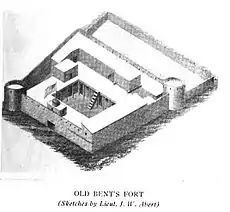 Three of William's brothers, George, Charles, and Robert, partnered with him in trading with Native Americans in the West. Robert and George died at Bent's Fort (1846 and 1841, respectively).[2] Charles was the oldest son, born in 1799, and the remaining brothers were born in or after 1806.[3] Later based in Santa Fe, Charles Bent lived in Taos. He served briefly as the first territorial governor of New Mexico.