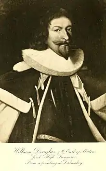 William Douglas, 7th Earl of Morton (1582 – 7 August 1648) was a grandson of the 6th Earl of Morton. He was Treasurer of Scotland, and a zealous Royalist.