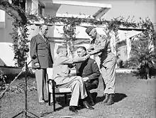 Wilbur was promoted to brigadier general effective December 1, 1942[3] and approved for the Medal of Honor on January 13, 1943.[1] The medal was presented to him by President Franklin D. Roosevelt during a ceremony in Casablanca on January 22, 1943, in the midst of the Casablanca Conference. Also in attendance were General George Marshall, the Chief of Staff of the United States Army, and Major General Patton. It was the first time that a U.S. President conferred the Medal of Honor to an American soldier on foreign soil.[4]