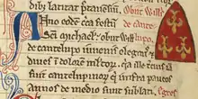 - Chronica Maiora - Royal MS 14 C VII, (The Historia Anglorum, or "History of the English", by Matthew Paris (d. 1259), a history of England covering the years 1070-1253. Begun in 1250 and perhaps completed around 1255) arms of William III de Cantilupe, folio 165v