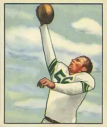 In 1945, he played for the Notre Dame football team. His long reception set up the disputed score against Navy, which ended in a 6-6 tie at Cleveland Stadium.[1] In 1946, he served in the U.S. Army for 18 months. The following year, Leonard played for the undefeated Notre Dame football team that won the National Championship under legendary coach Frank Leahy, whose players were known as "Leahy's lads".[1] The 1947 team, which had two Heisman Trophy winners, Johnny Lujack and Leon Hart, was cited by Sports Illustrated as the best college football team of all time. The Fighting Irish, who never trailed in a single game that year, saw 41 of its players go on to play professional football, including Leonard.[1] He played for two seasons with the Baltimore Colts, in 1949 and 1950, and spent a year in the Canadian Football League in 1951.[1]