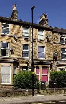 Between 1874 and 1891 Webber's address was 39 Goodge Street, London, and in 1891 he moved to Holliscroft, Dale Street, Harrogate.[16] Between 1901 and 1911 (and possibly until his death) he lived in a modest terraced house: Holliscroft, 3 Mayfield Grove. Harrogate. In 1891 his mother and sister Edith were living with him; by 1911, just his sister. He never married.[6][13][17][18] Webber died around 17 March 1919 in Harrogate.[19] He is buried in Grove Road Cemetery, Harrogate, but has no grave stone.[6][20][nb 2]