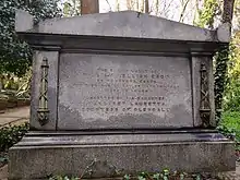 His estate was worth about £3m when he died.[3] He had two heirs, his daughters Elizabeth and Margaret Lauretta, who both married improvident aristocrats: Elizabeth married Lord Edward Thynne in 1830, and Margaret married The 2nd Earl of Glengall in 1834.[4] The same year Margaret paid for a family vault for her father in Highgate Cemetery.