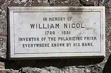 William Nicol FRSE FCS (1768? – 2 September 1851) was a Scottish geologist and physicist who invented the Nicol prism, the first device for obtaining plane-polarized light, in 1828.