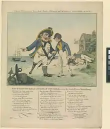 Several versions exist,[2] but the story of the song concerns a young couple due to be wed. On the morning of the wedding, the groom William Taylor (Billy in some versions) is pressed into service. The bride searches for him, disguising herself as a man to become a soldier[3] or sailor.[4] When her true gender is revealed (usually in an incident involving accidental exposure of her breasts), the captain points her in the direction of her beloved, but mentions that he now has a new suitor. When she finds him, she shoots him and sometimes also his new bride. In some versions, she is then rewarded by the captain with command of her own ship.[5]