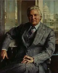In part to reward Usery for his loyalty and as a sign of respect for Usery's mediation and negotiation skills, Nixon appointed Usery to be Special Assistant to the President for Labor-Management Affairs in January 1974.[7] In this capacity, Usery advised the president on labor-management relations in the federal government and private sector, and became the presidential point-man in labor disputes which might have a significant impact on the national economy. The appointment lapsed after Nixon's resignation in August, but Gerald Ford re-appointed him to the position in January 1975. He continued as director of the Federal Mediation and Conciliation Service until appointed by Ford to be Secretary of Labor in February 1976.[8][9]
