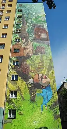 In July 2009, the-then largest mural in the country was created near the park. After a week of work, nine young artists from Bydgoszcz, Olsztyn and Łódź realized a painting depicting Peter Pan under a tree with fairy-tale characters.[4]