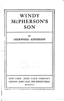 Windy McPherson's Son is a 1916 novel by American author Sherwood Anderson. It was published by John Lane as part of a three book contract. Windy McPherson's Son is Sherwood Anderson's first novel.