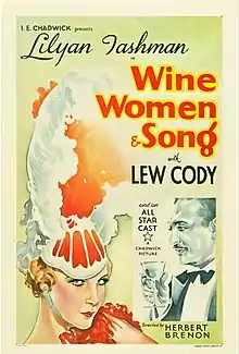 Wine, Women and Song is a 1933 American pre-Code drama film directed by Herbert Brenon and starring Lilyan Tashman, Lew Cody and Marjorie Reynolds.[1]