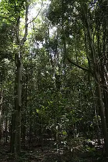 Along the Manning River is Wingham Brush, an area of lowland tropical rainforest remnant on a floodplain,[12] including spectacular Moreton Bay Fig trees and home to a colony of Grey Headed flying foxes. The story of the restoration of Wingham Brush from a weed infested area of public land is an epic tale of a small band of dedicated volunteers battling entrenched regeneration doctrine, competing interests, bureaucracy and public opinion. Thankfully the volunteers and local know-how prevailed and Wingham Brush remains a fantastic tropical rainforest remnant that brings tourists from around the world to view the rainforest and the flying foxes nightly exit over the Manning River at Wingham Riverside Reserve (WRR) overnight camping area. For many years the flying foxes were considered pests and various initiatives were taken to remove them, including offering free ammunition to those willing to shoot them. These efforts proved ineffective and, in more recent years, moves have been taken to protect the flying foxes, which have become a tourist attraction.
