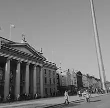 She was present with Connolly in the Dublin General Post Office during the Easter Rising in 1916. Carney was the only woman present during the initial occupation of the building,[8] which she entered armed with a typewriter and a Webley revolver. While not a combatant, she was given the rank of adjutant and was among the final group (including Connolly and Patrick Pearse) to leave the GPO. After Connolly was wounded, she refused to leave his side,[9] despite direct orders from Pearse and Connolly.[5] She had earlier taken the wounded Connolly's final dictated orders.[10] Carney, alongside Elizabeth O'Farrell and Julia Grenan, left the GPO with the rest of the rebels when the building became engulfed in flames. They made their new headquarters in nearby Moore Street before Pearse surrendered. [11]