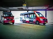 West of the station building is a free park and ride (Dutch: parkeer en reis) area with 120 car parking spaces and 320 bicycle stands at the station.[24] There are also subscription-only bicycle lockers and a subscription-only bicycle rental service.[28] There is a tunnel for cyclists and pedestrians underneath the tracks and platforms to the south side of the city.[24] East of the station building is a bus station which is owned by Arriva.[24][22] There is also a taxicab stand at the station.[28]
