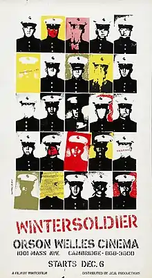 The many documentary filmmakers in the Winterfilm Collective (listed as Winterfilm, Inc. in the credits to the film Winter Soldier) consisted of: Rusty Sachs, Fred Aranow, Nancy Baker, Joe Bangert, Rhetta Barron, Robert Fiore, David Gillis, David Grubin, Jeff Holstein, Barbara Jarvis, Al Kaupas, Barbara Kopple, Mark Lenix, Michael Lesser, Nancy Miller, Lee Osborne, Lucy Massie Phenix, Roger Phenix, Benay Rubenstein, and Michael Weil.[1] The collective produced the 1971 film documentary about the Winter Soldier Hearings in Detroit, as well as associated anti-war protests and marches.